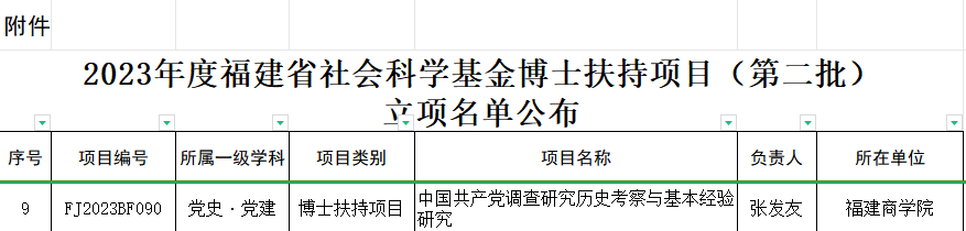 喜讯:2023年度福建省社会科学基金博士扶持项目(第二批)已完成受理申报、资格审查、匿名评审、网上公示等程序,公司张发友博士获得2023年度福建省社会科学基金博士扶持项目(第二批)立项