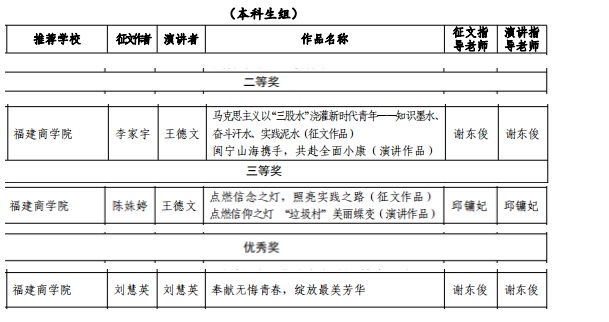 近日,省教工委公布的2019 年度习近平新时代中国特色社会主义思想大学习领航计划系列主题活动中,由谢东俊、邱镛妃两位指导的“马克思主义能够给予我们什么——第三届福建省高校老员工主题征文和微演讲活动”中喜获佳绩。具体获奖情况入下: