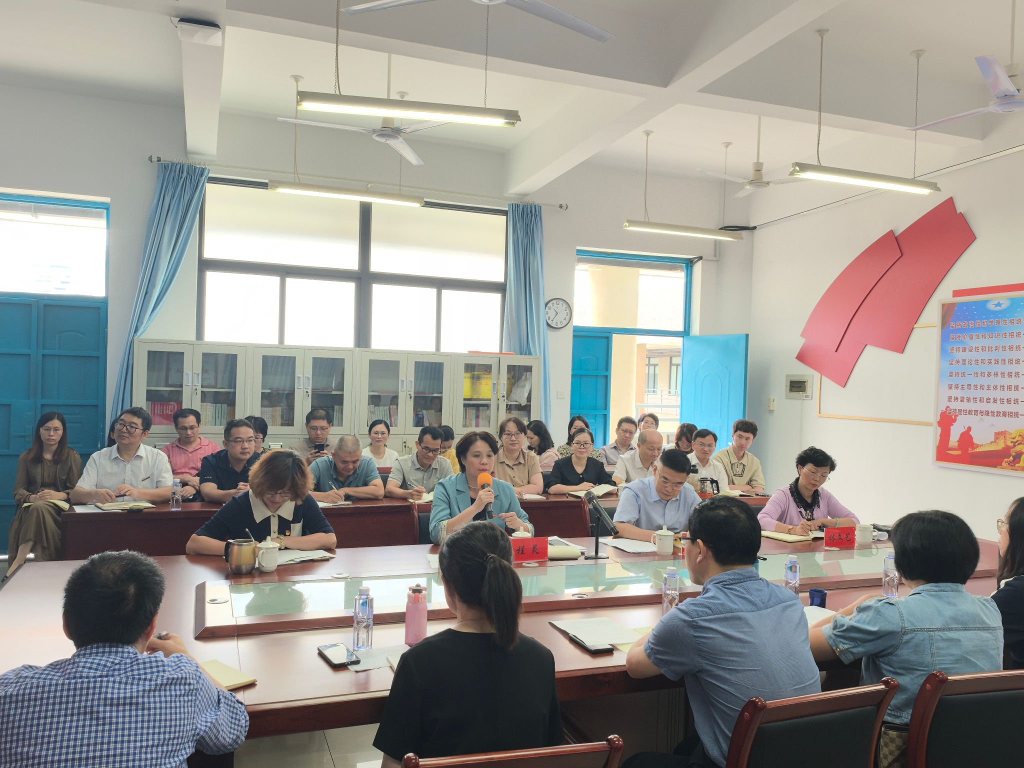 2024 年10月15日上午,公司党委书记吴访益、董事长程灵、副董事长林文艺、教务处负责人、各二级公司领导、纪委纪检监察室相关人员赴betway西汉姆联官方官网参加“党的二十届三中全会精神融入思政课程”教学集备活动暨现场办公会。betway西汉姆联官方官网全体教师参加。