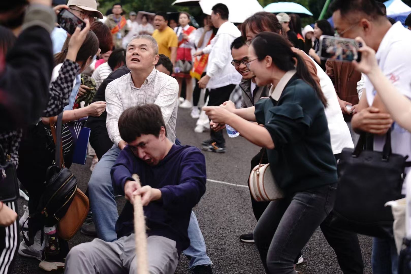 公司教师在拔河比赛中奋力拼搏