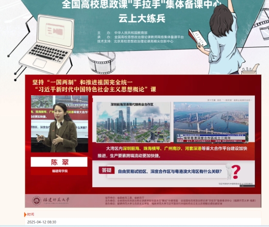 陈翠老师聚焦授课对象为经济类专业员工的特点,以《香港澳门如何融入国家发展大局——从粤港澳大湾区建设说起》为题进行了教学展示,得到线上线下参会专家、老师的肯定。