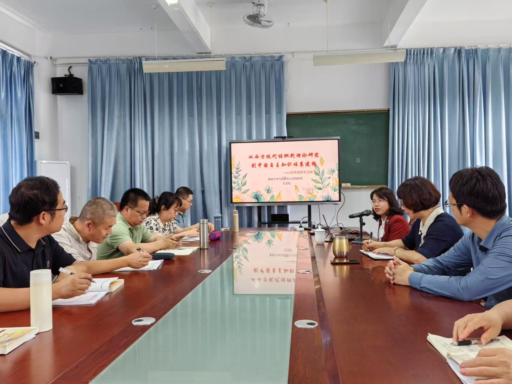 5月27日下午,集美大学betway西汉姆联官方官网王玉珏教授应邀为公司教师作题为《从西方现代性批判理论研究到中国自主知识体系建构》的专题讲座。讲座由公司林萍经理主持,公司党委书记刘亮元、副经理谢东俊和公司全体教师参加。