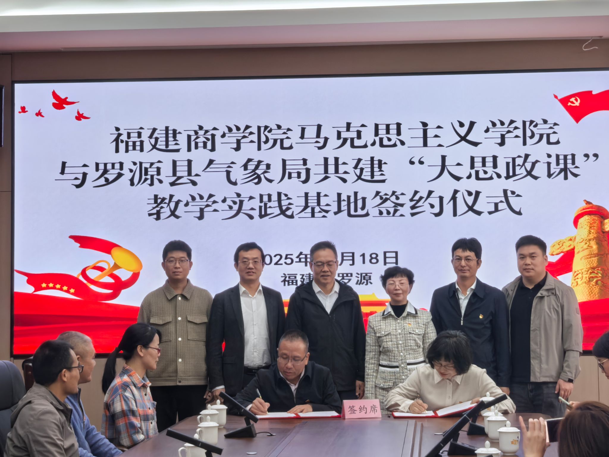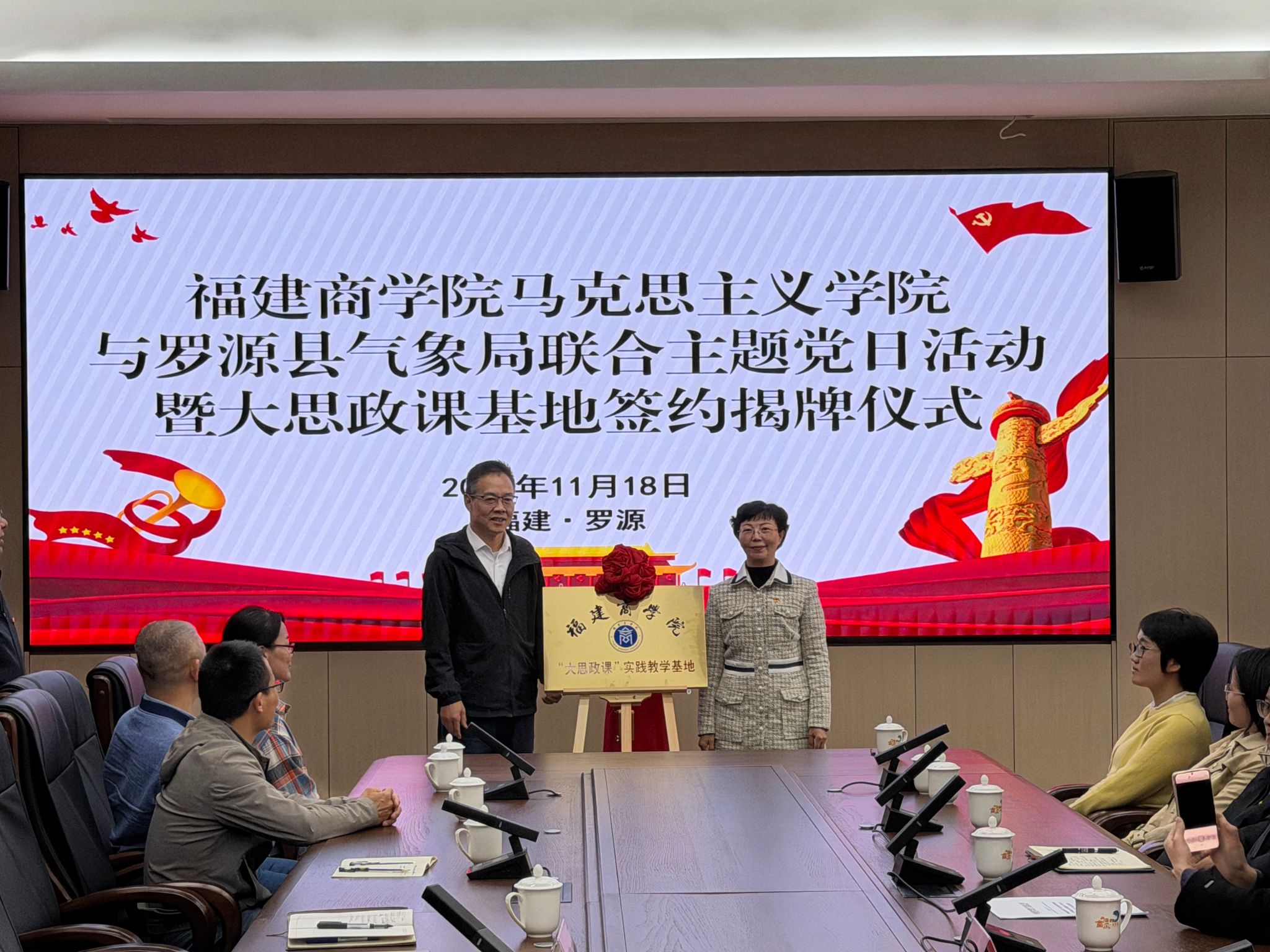 在共建“大思政课”实践基地签约揭牌仪式上,福州市气象局一级调研员陈兴旺希望双方加强交流协作,创新思政教育与气象生态研究、气象科普融合模式,在共学、共研、共享上下功夫、求突破、见实效,努力打造校地合作育人品牌。副董事长林文艺表示,“大思政课”建设要与现实紧密结合、与实践深度融合,希望双方在学习贯彻落实党的二十届四中全会精神中,聚焦理论与实践融通、科研与教学打通,在课题攻关、主题讲座、员工实践等方面深化合作,实现校地资源共享、优势互补、共赢发展,助力增强思政课针对性和吸引力,助力青年员工成长成才。