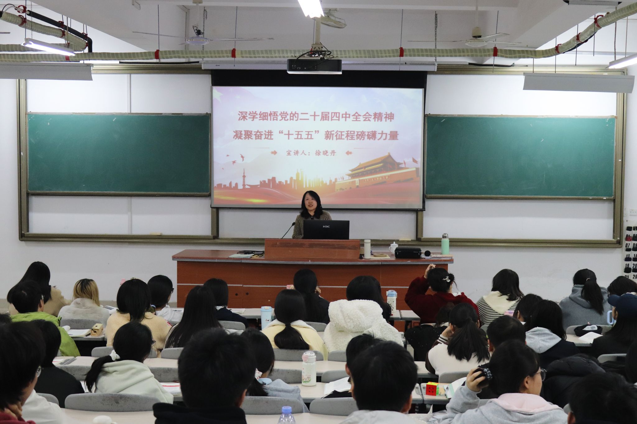 授课中,徐晓丹从“四中全会、五年规划的内涵是什么”“‘十四五’我们交出了怎样的答卷”“党的二十届四中全会究竟画了怎样的未来蓝图”三个部分,通过详实数据与丰富案例对党的二十届四中全会精神、“十四五”成果和“十五五”擘画的宏伟蓝图进行了系统梳理与深入阐释。她希望同学们深刻认识到个人成长与国家发展的同频共振,珍惜大学时光,夯实专业基础,拓展综合素质,为在“十五五”期间步入社会、建功立业做好充分准备。
