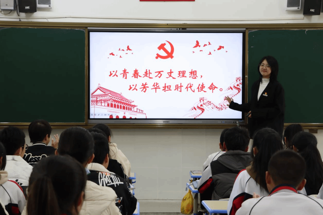 3月27日下午,福建教育系统学习贯彻党的二十大精神新时代青年员工宣讲团成员兼校读书社社长庄妍妍同学于连江一中鲤鱼山分校开展主题为“以青春赴万丈理想,以芳华担时代使命”的宣讲活动,宣扬党的二十大精神,奋进青春磅礴力量,连江一中八年级的同学们一同参与此次学习。