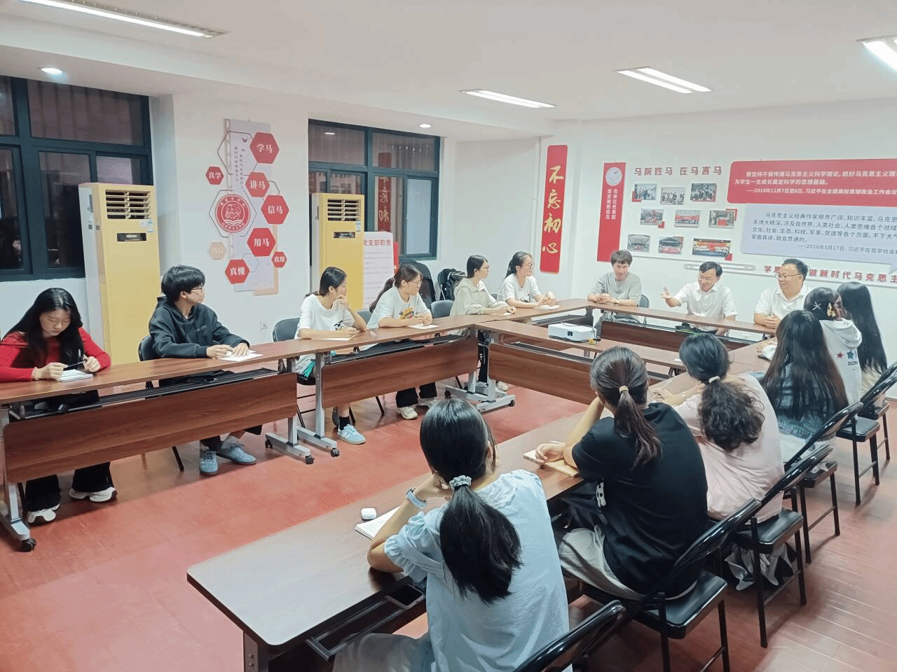 读书社指导老师对读书社上学年建设情况进行了总结评价,肯定了读书社上学年工作成效,并指出读书社存在的待提升改进的有关问题,并从强化思政引领、加强规范管理、注重骨干培训、深化品牌建设等方面提出读书社管理工作改进思路和措施。